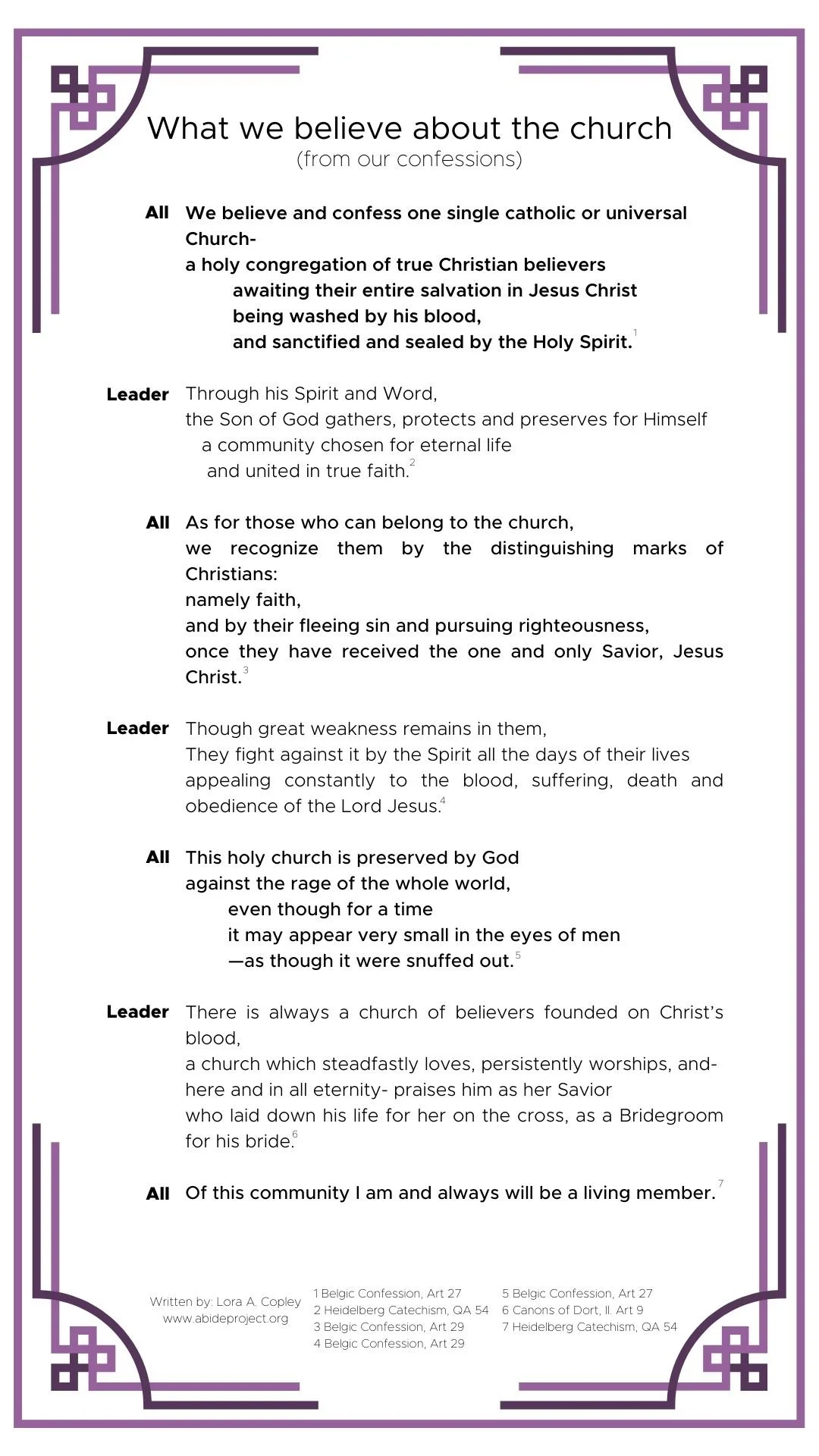 The Three Forms of Unity Heidelberg Catechism Belgic Confession and the Canons of Dordrecht and the Ecumenical Creeds the Apostles Creed the Athanasian Creed and the Creed of Chalcedon. The doctrine asserts that it is on the basis of faith that believers are made. The Migrant Camp of the People of God.